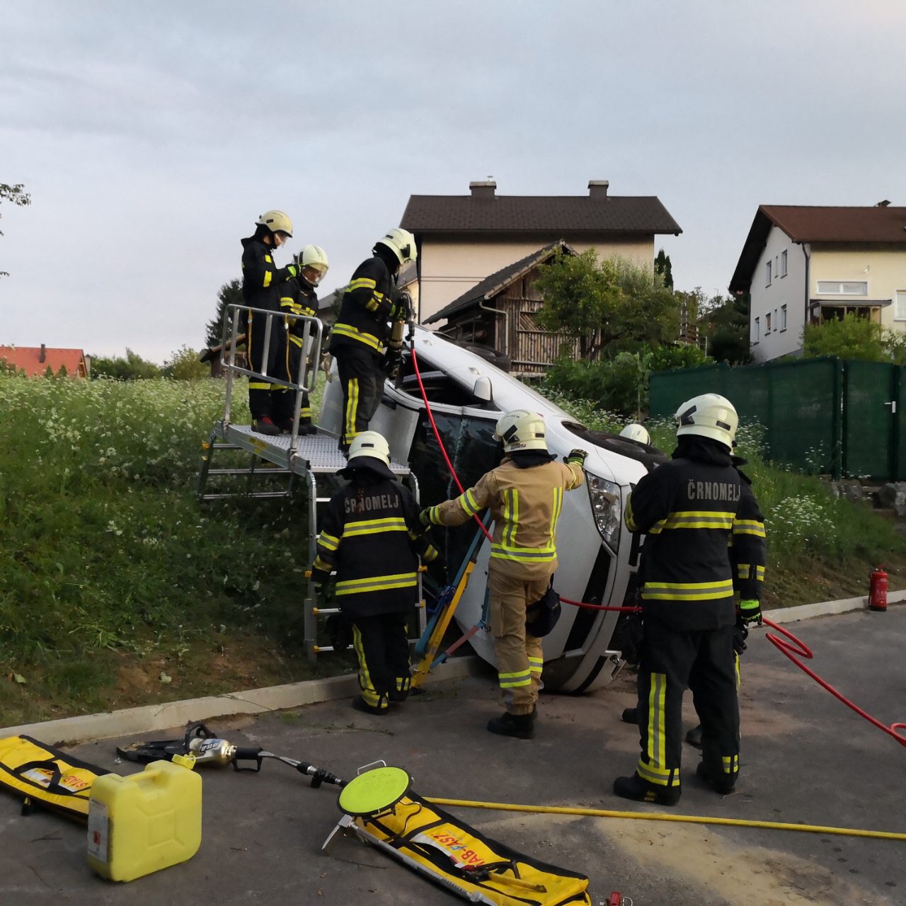 V petek 12.7 smo imeli člani PGD Črnomelj vajo iz tehničnega reševanja. Najprej smo se poigrali z vozički za premik vozila, nato pa smo z GVCZD-1 avto postavili na brežino. Z reševalno ploščadjo smo si pomagali, da smo lahko avto razrezali in rešili ukleščeno osebo.