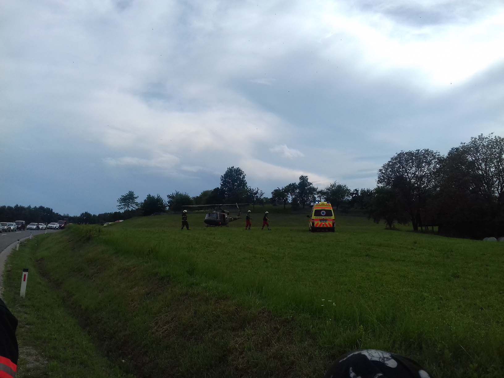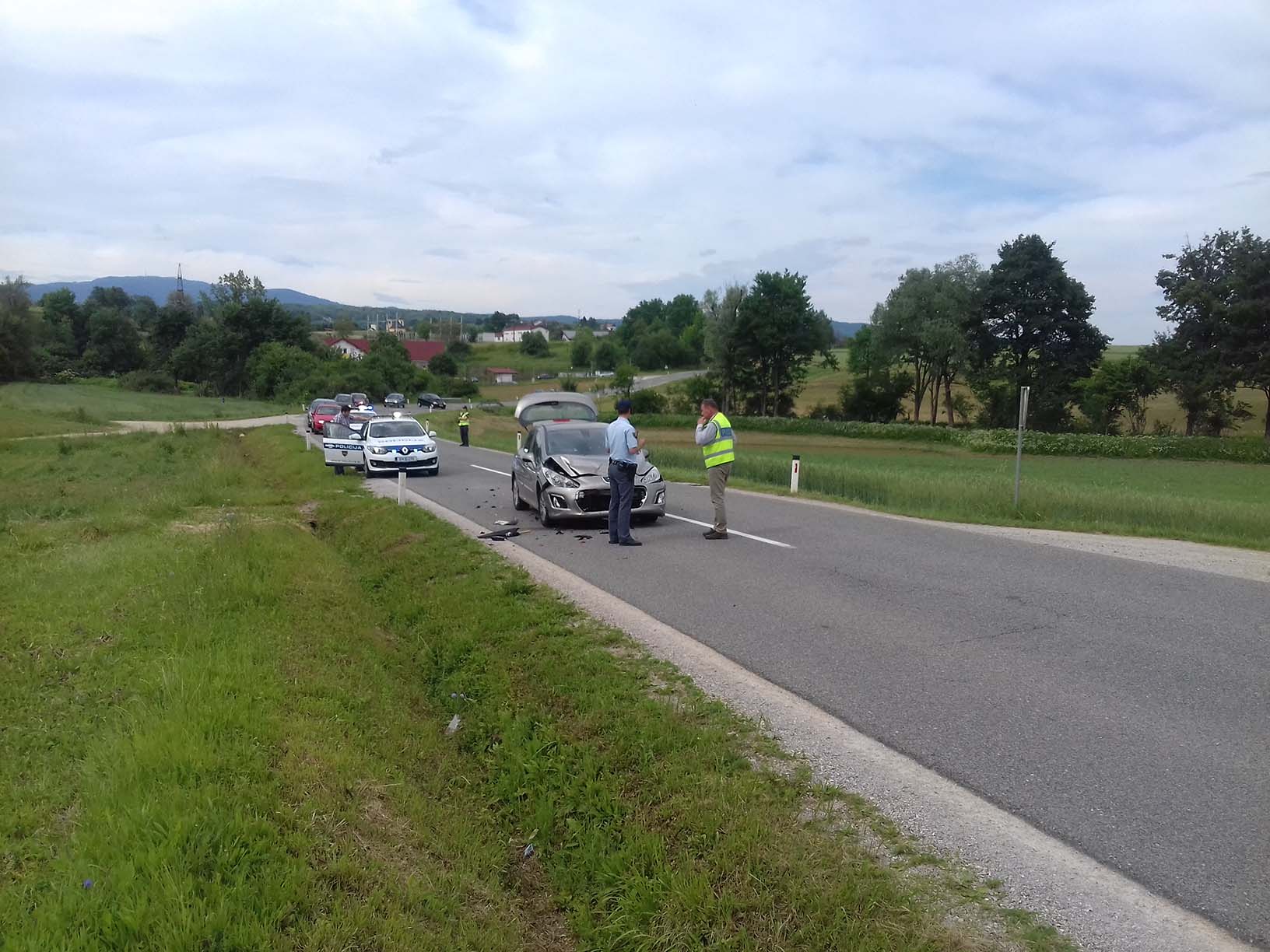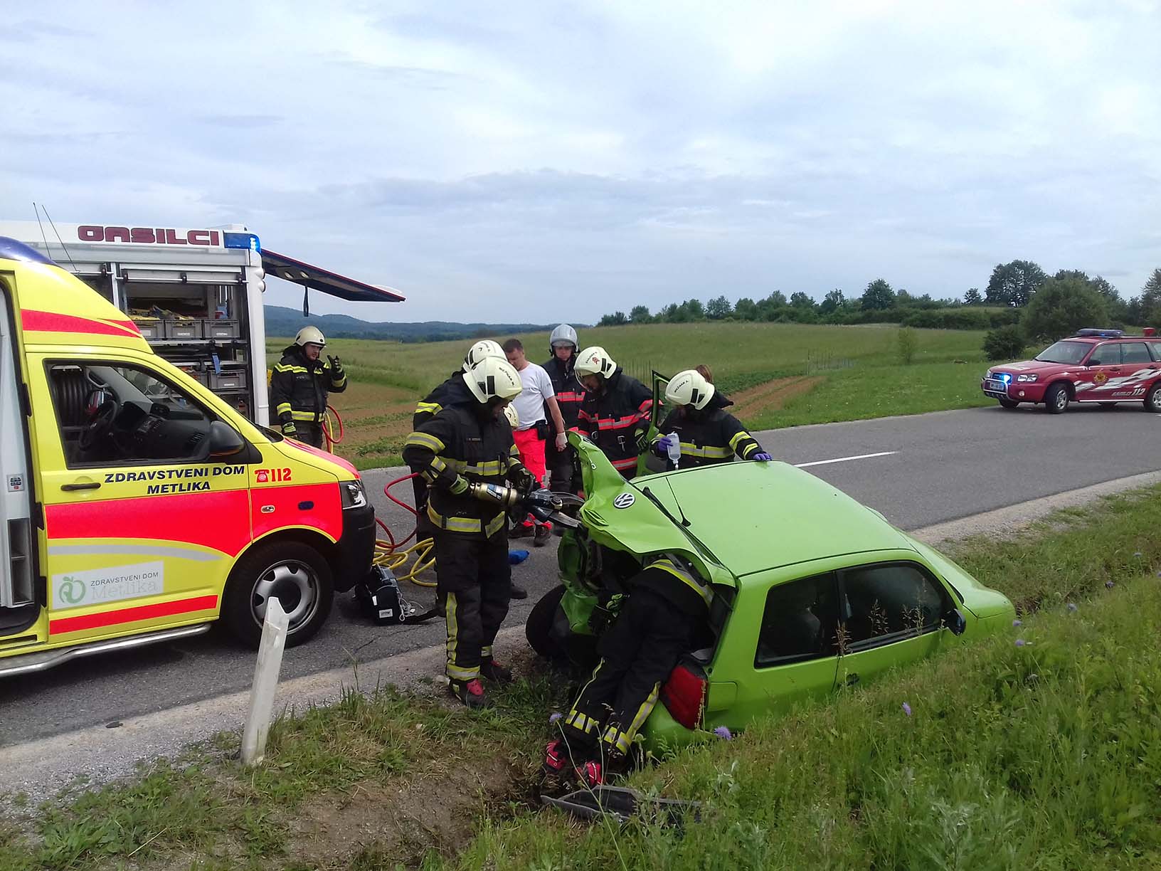 Ob 15.46 sta na cesti Črnomelj–Metlika, trčili osebni vozili. Gasilci PGD Črnomelj smo zavarovali kraj dogodka, odklopili akumulator, očistili cestišče razlitih motornih tekočin, s tehničnim posegom iz vozila rešili poškodovano osebo, nudili pomoč delavcem avto vleke in reševalcem NMP Metlika pri prenosu in oskrbi poškodovane osebe, ki so jo v klinični center Ljubljana s helikopterjem prepeljala dežurna ekipa HNMP in posadka helikopterja Slovenske vojske.